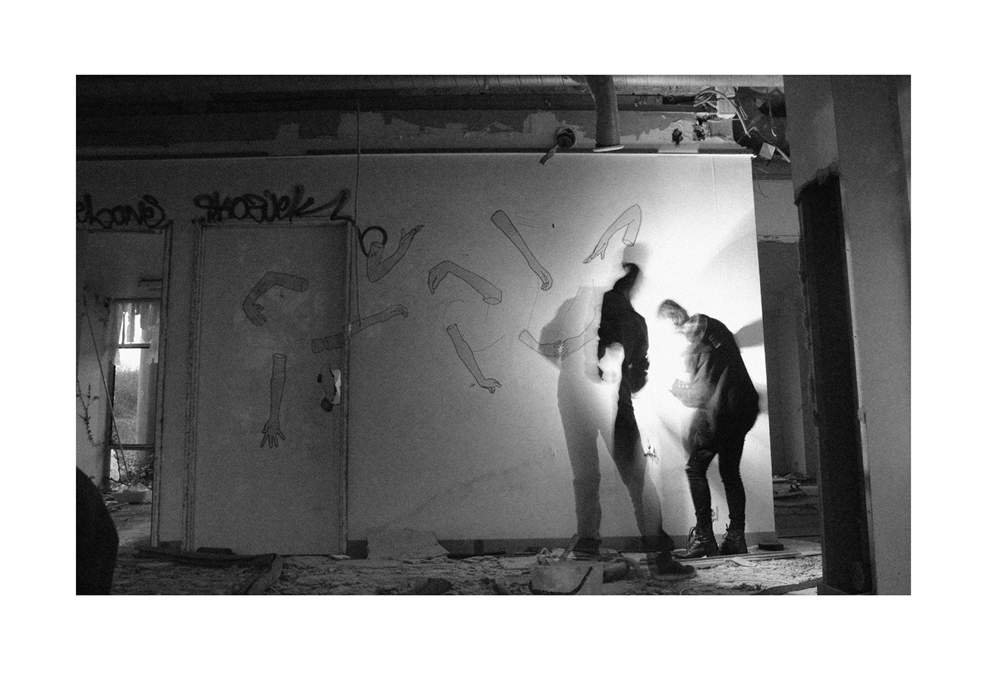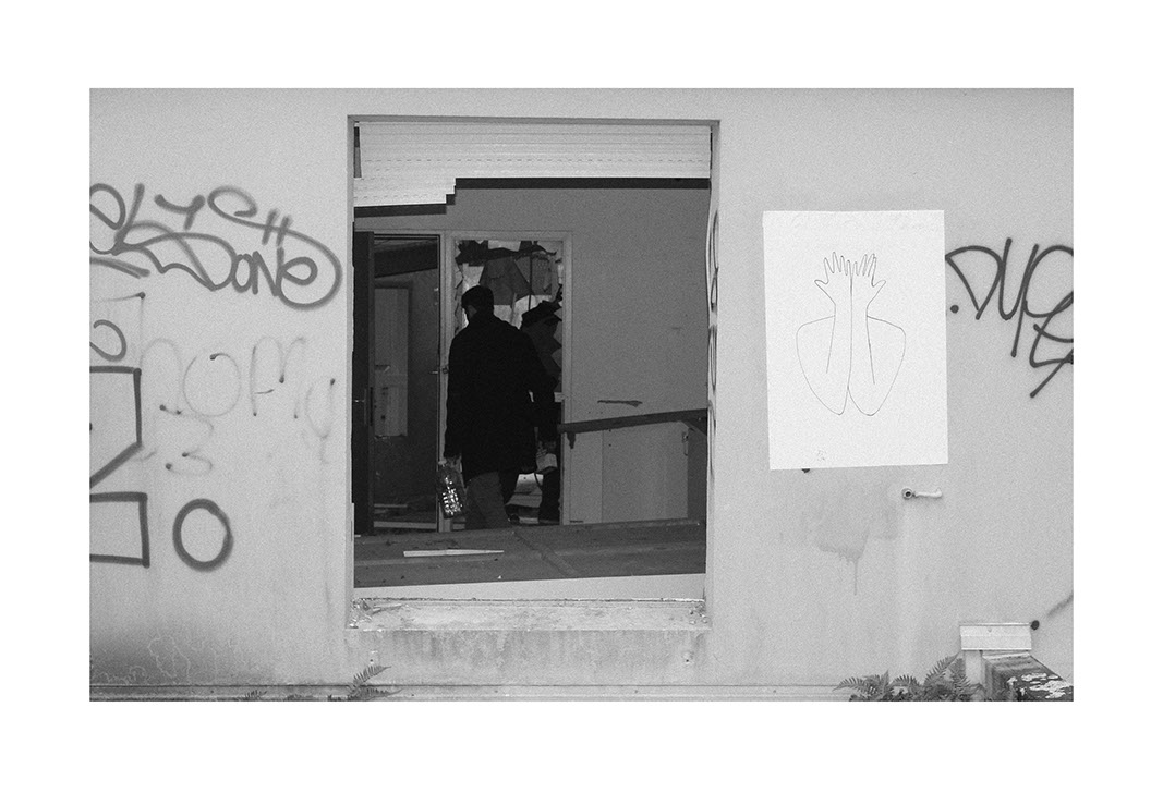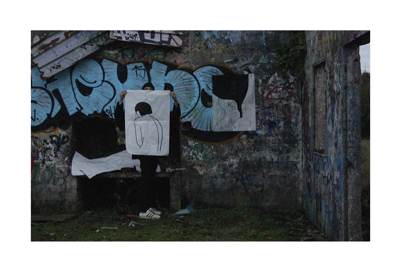 Ici, la technique du collage permet non seulement de prendre possession d’un lieu mais aussi au dessin de dépasser le cadre de la simple feuille de papier et d’acquérir une dimension matérielle.